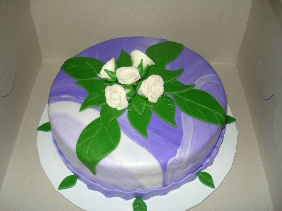 This was for my MIL's birthday. I was trying to get one more practice with fondant in before my niece's Hello Kitty cake last month. So my MIL wouldn't feel like it was just another practice cake, I tried to marble it with her favorite color and made roses using a video I found on youtube. DH helped make roses :)