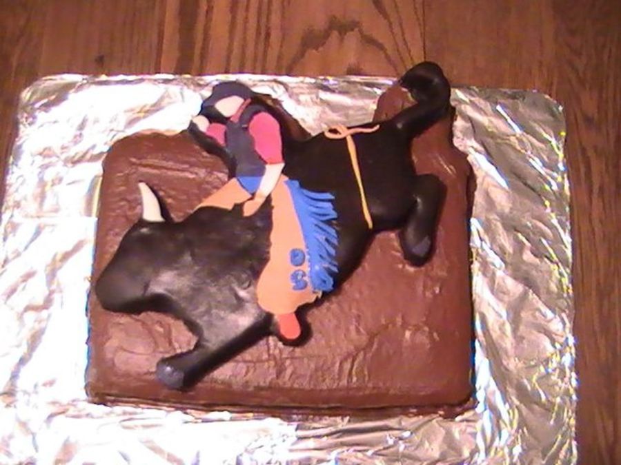 My sons 3rd birthday cake and my first attempt at a real cake. It may not be as fancy as some of the cakes on this site but I worked really hard and couldn't find anything like it when I was looking for help so I hope this helps some one else. Its scratch choc cake with real butter cream icing, won't do that again. The bull and rider are fondant and all hand done.