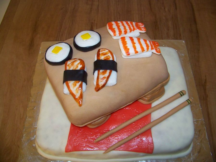 I made this cake for fun & that's exactly what I had doing it! There are definitely some imperfections, but all-in-all I think this cake came out GREAT! Chocolate cake covered in MMF. The sushi tray & legs are also cake. Sushi pieces & chopsticks made out of fondant & painted. I love unagi, so I had to make some for this cake. As always comments/criticism on how I can improve the look of my cakes is always appreciated. TFL!