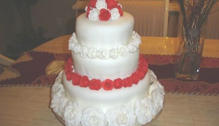 I just finished this cake is a Wilton design I hope came out well...All is made with fondant and is a vanilla cake with rum syrup.