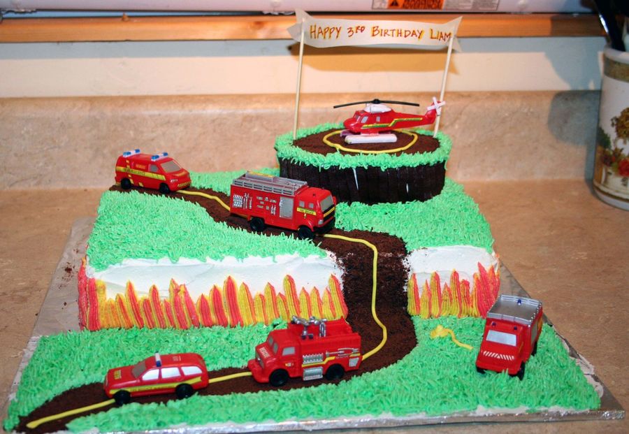 The mom wanted me to use all these firetrucks and helicopter, I think it turned out cute.
