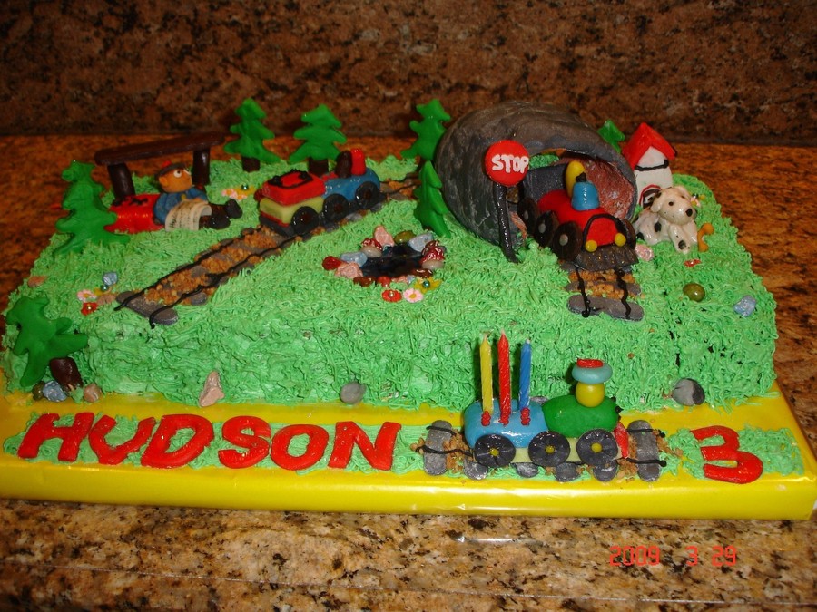 made this cake for a friend's son. was quite a lot of fun as it was the first time i made a fondant person, bench, dog etc.