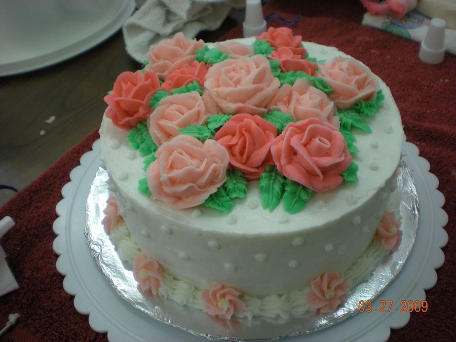 This is my 3rd cake I made in class. Its white cake with strawberry filling and buttercream icing.