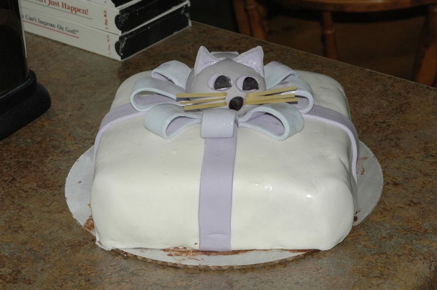 This was my first try at fondant. It was a ton of work and even more learning as I went along. Whiskers are uncooked spaghetti noodles (lol).