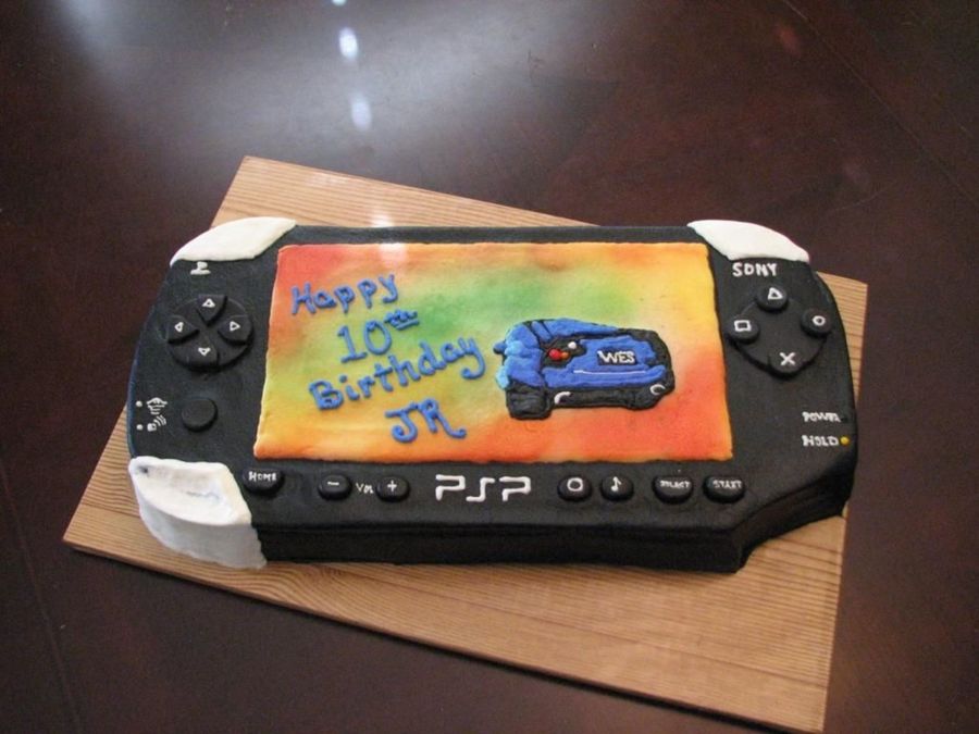 Friend asked for a cake shaped like a PSP for her son's birthday. Iced in buttercream, buttons in fondant. Birthday boy loved it.