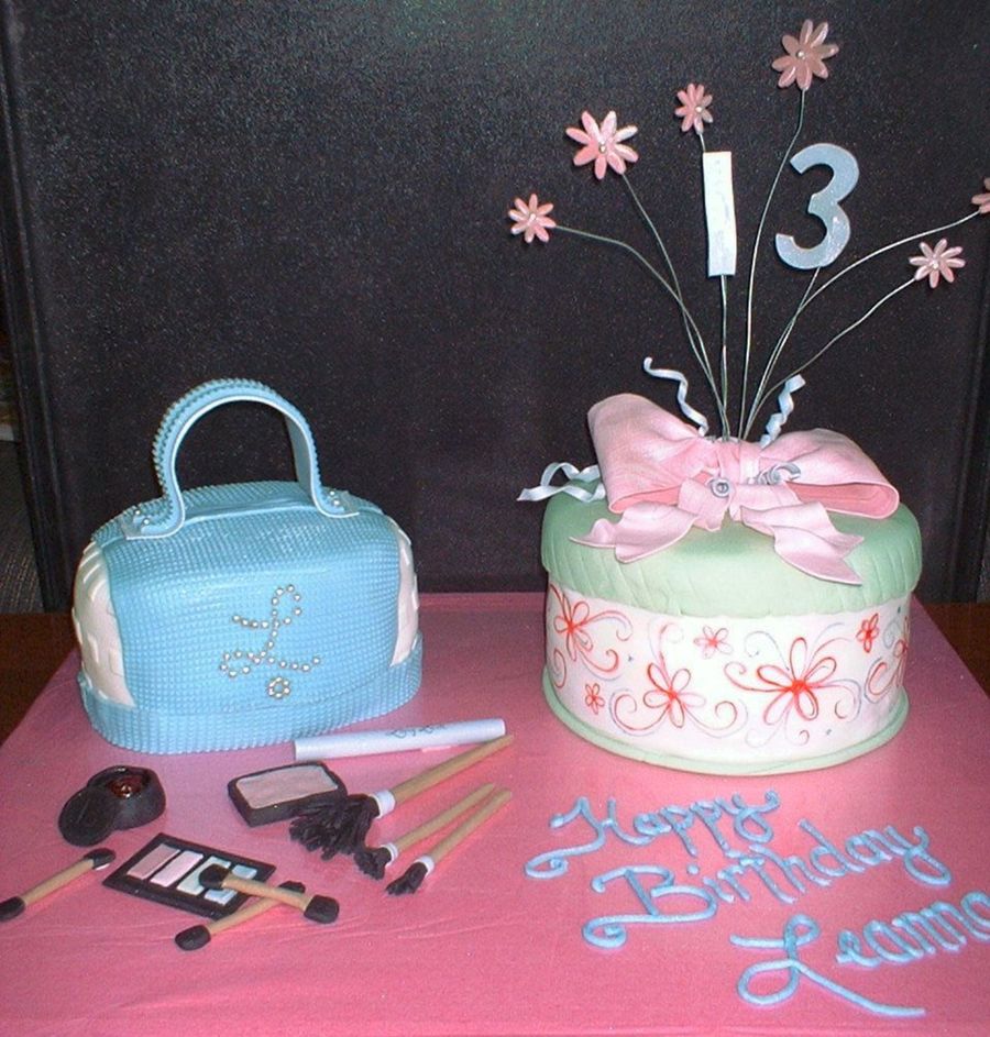 This cake was a blast to make. Purse cake, with silver dragee monogram, present cake with gumpaste bow and wired flowers and fondant makeup and brushes to complete the theme for a 13 year old girls birthday party. When I delivered this cake, I was attacked with screams and hugs...and a couple of tears from the birthday girl and friends.