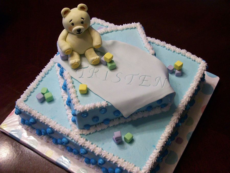 My first baby shower cake and my first gumpaste bear....he turned out kinda fat!