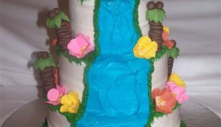 All chocolate cake covered with BC and Fondant. dusted with brown, lemon and lime dust.