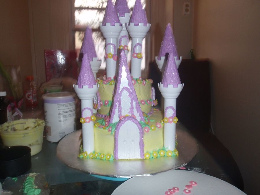 Castle cake w/ fondant flowers, buttercream smf wilton's castle kit