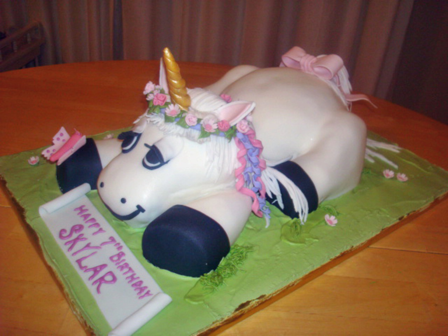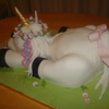 Scultped and then covered in buttercream and then fondant. Flowers, ribbons and butterfly are gumpaste.