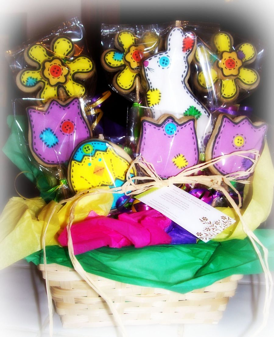 Another basket with patchwork flowers, bunny and egg chick. I've sold 3 like this!