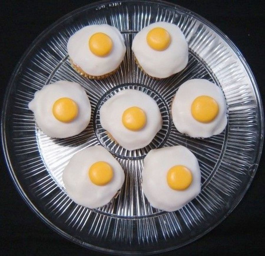 I made these egg cupcakes for my church's children program. It was so much fun watching the kids expressions! :) The yolk and white are both fondant. Thanks to doofusmongerbeep for the inspiration!