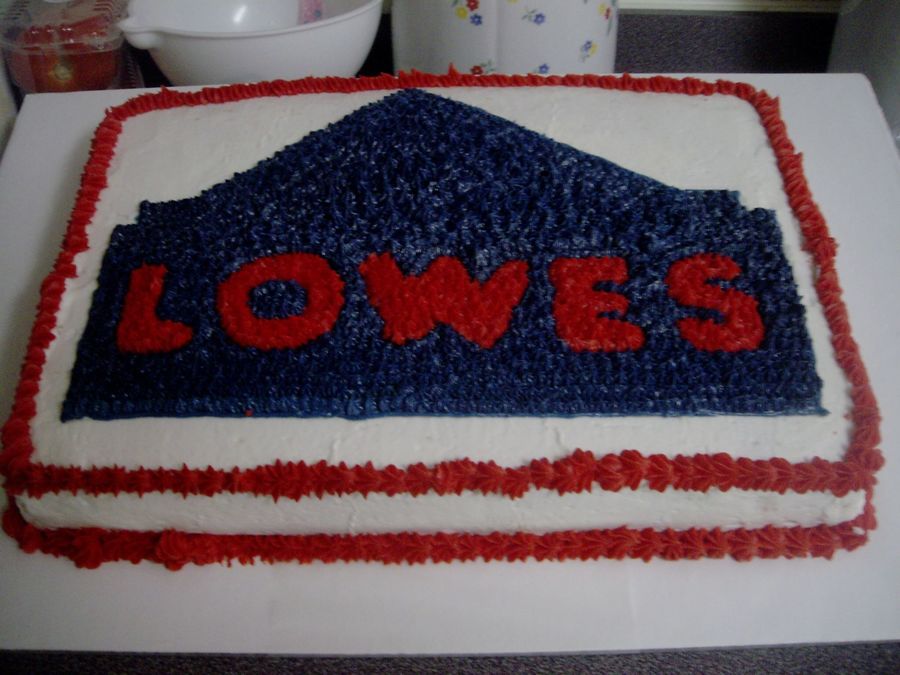 This was a cake I made for my husband to carry to work. He works at lowes. I was just practicing. It is a white cake with bc icing.
