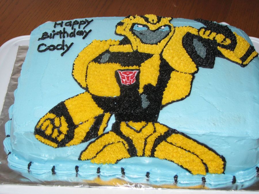 I drew the transformer on parchment paper and transfered in sections and decorated- all in buttercream