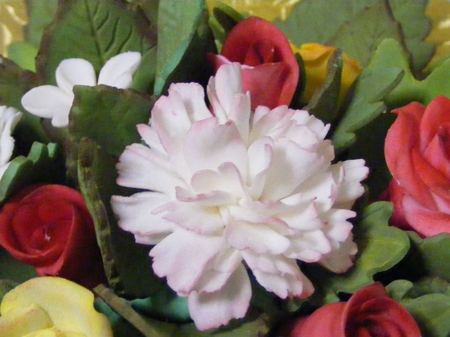 These things gave my heck..... but I am satisfied with the outcome since i didnt use a carnation cutter i used a garret frill cutter and forgot to take the large center off....and pulled the center out before I began to work on the flower....(duh)....