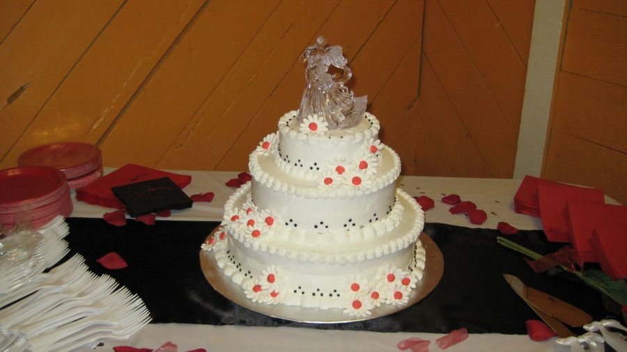 Cake I made for a cousin's wedding. BC with RI daisies. Bottom layer was French Vanilla w/regular BC filling, second layer and top layers were chocolate fudge cake w/Oreo filling.