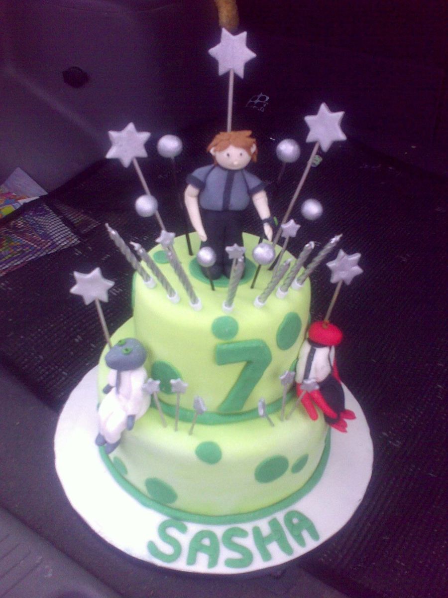 Chocolate cake covered in fondant with white chocolate frosting filling. Fondant figurines.