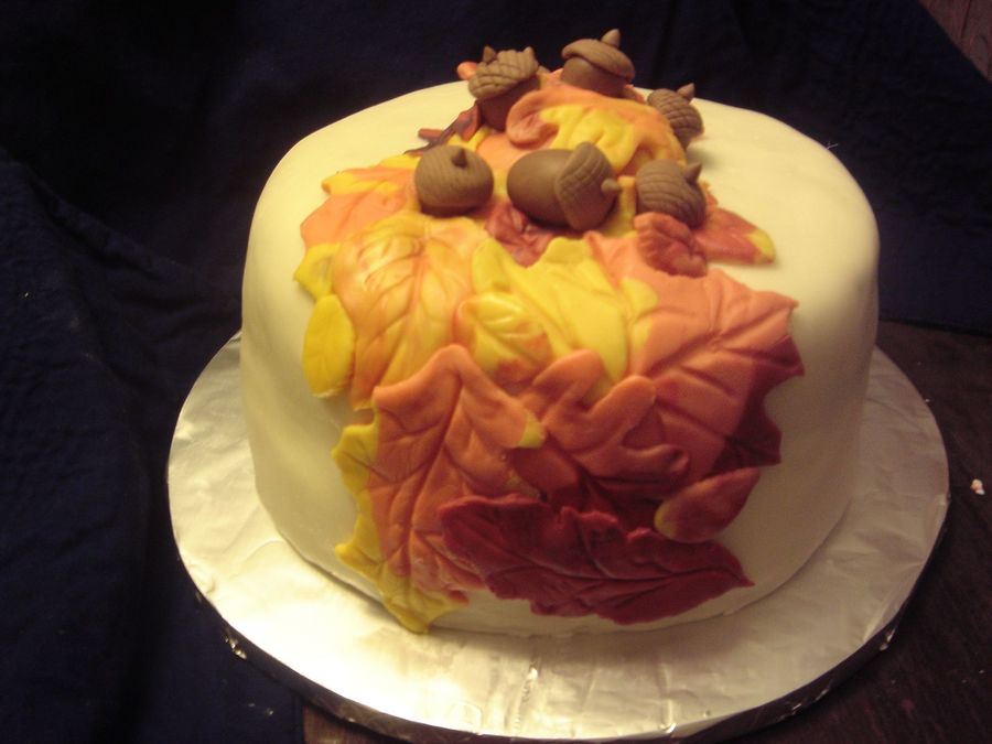 Covered with MM fondant and MM fondant leaves. Acorns with gumpaste