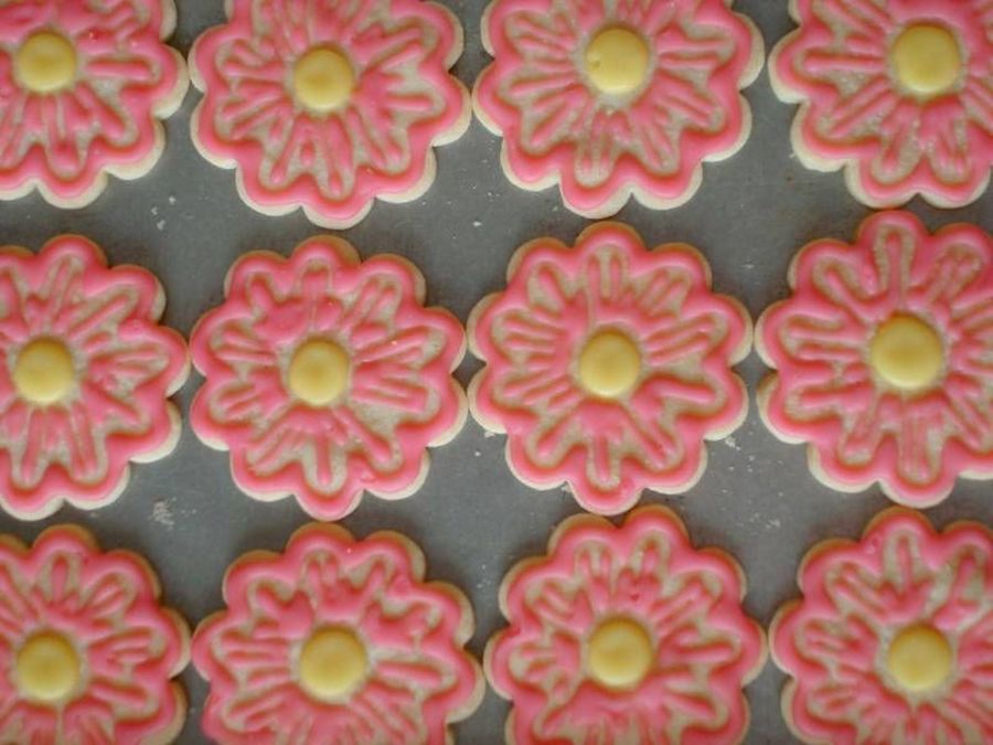 I made these cookies to match flowers on a cake that was for a surprise birthday party.