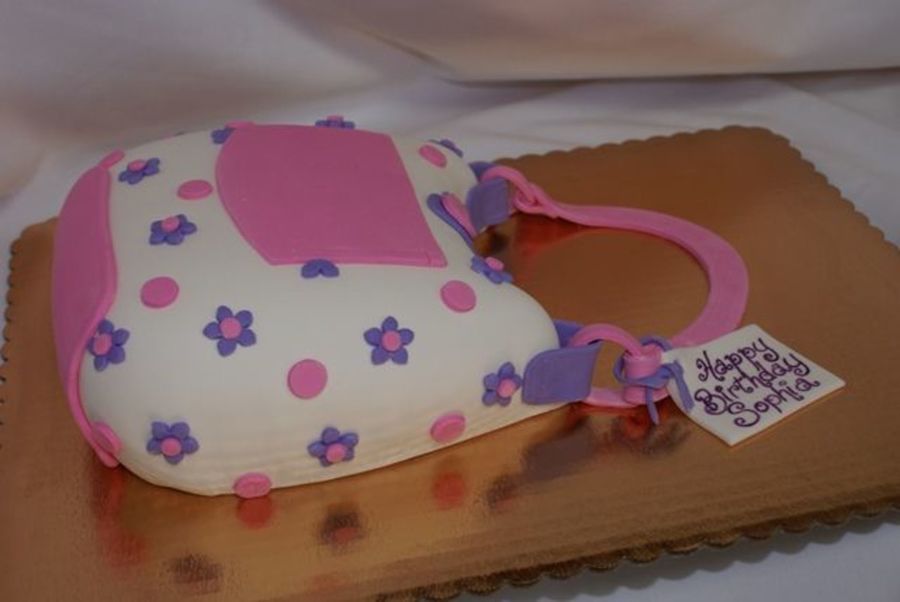 Another purse cake, this one for a little girl who loves pink and purple.