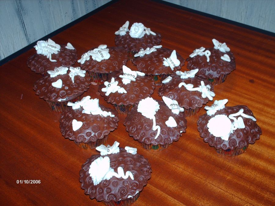 cho, cupcakes with cho, mmf and mmf accents, buttercream frosting and roses,dragees on the butterflys and some flowers