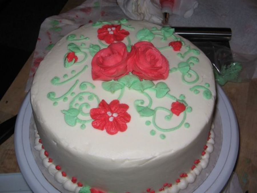 Yup totally had extra time this week so I practiced a bit :) cake is red velvet, with chocolate cream cheese filing. I had watched seriouscakes youtube videos and was tempted to try doing the flower right on the cake, well I chickened out on the rose and only did the little blossoms :) I like it!