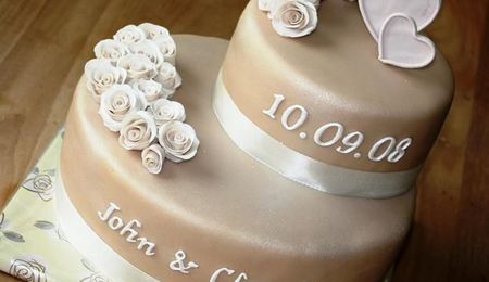Sandcoloured Wedding Cake With Roses