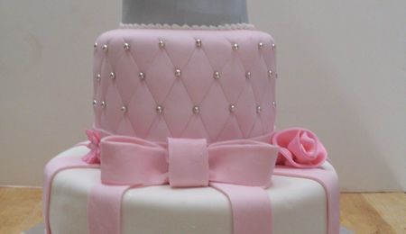 I did this last minute cake for my church's Mom's group. It turn out to be a really cute little cake. It is covered in MMF.
