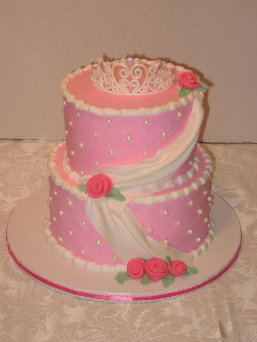 First birthday cake for my niece. Her mom wanted it to be princessy! Tiara is fondant.