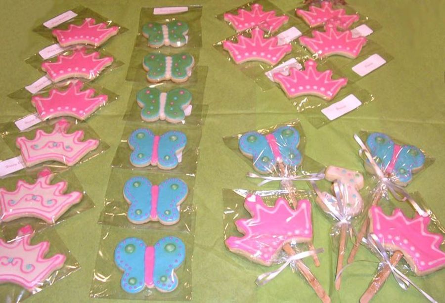 Crown and Butterfly cookies for a 3rd birthday party. These were a lot of fun! NFSC with my variation of Alice's icing.