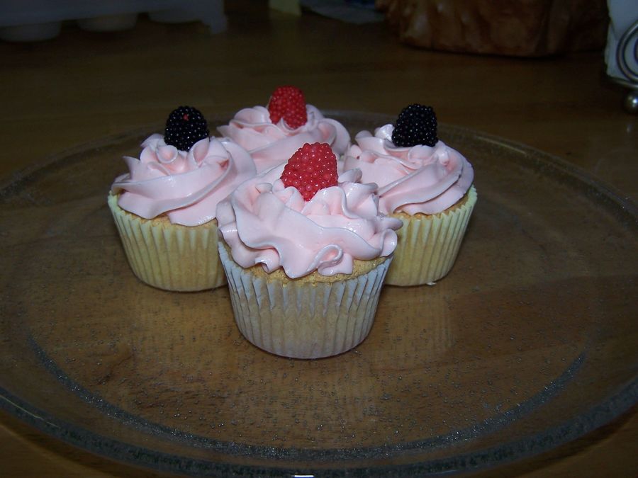 Raspberry white chocolate cupcakes with blood orange SMBC. I had tried for a pink grapefruit BC but couldn't get enough flavor from the juice or zest, and I couldn't find Grapefruit Flavoring. So I found some Blood Orange syrup at World Market (Love that store!!) and OMG it is amazing!! TFL