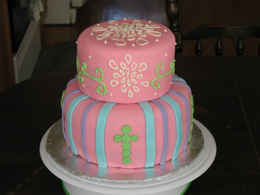 This is pretty much my first experience with fondant, I think it came out alright. This is an original design I came up with last weekend and I just had to follow through with it. The cross was a last minute decision because I had some extra space/extra green fondant dots but I love it. I had barely any of the tools I needed, so all things considered, it came out wonderfully! Oh and I'm trying to make my own cakes from scratch now, so we'll find out if they are yummy or not :)
