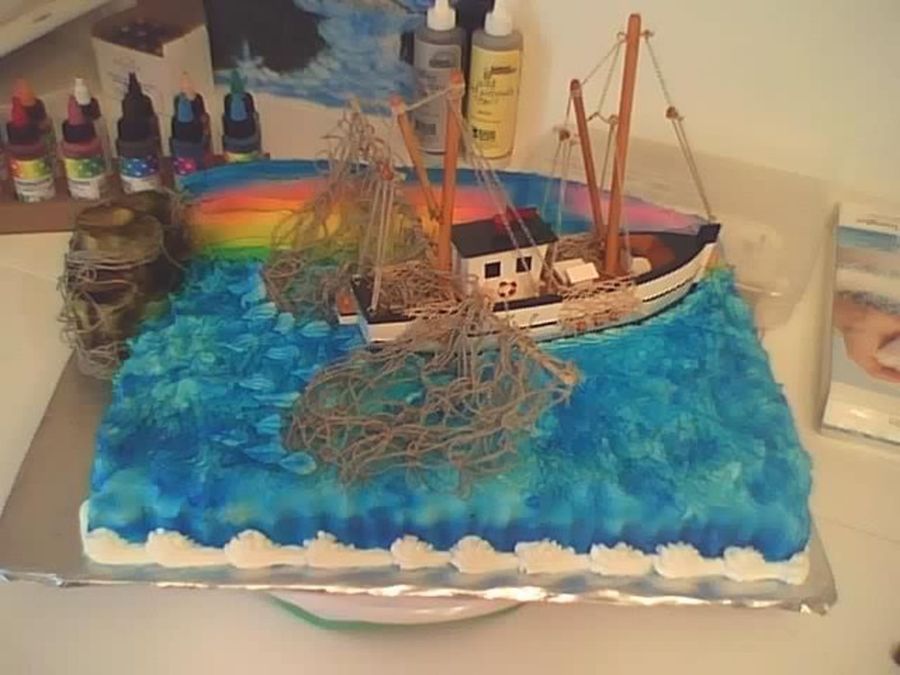 found wooden strimp boat at hobby lobby bought net parts, two dowells and made the nets flip out dragging