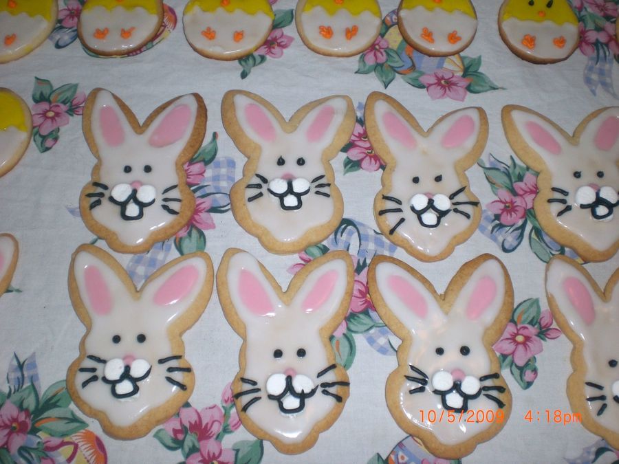 Easter cookies for Easter Sunday, the bunnies have mini marshmallows for cheeks and teeth, and eyes and whiskers RI