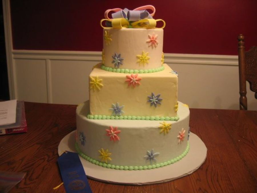 This is the cake that I submitted in our local fair, and won first prize. It was my first time using cake dummies and thanks to all of the advise I found on CC there were no problem