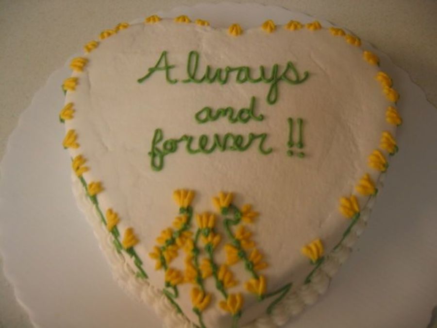 This cake was done as an anniversary cake. My friend called and said that she never had a wedding cake and her only request was that it taste like a wedding cake. So WASC and classic BC it was.