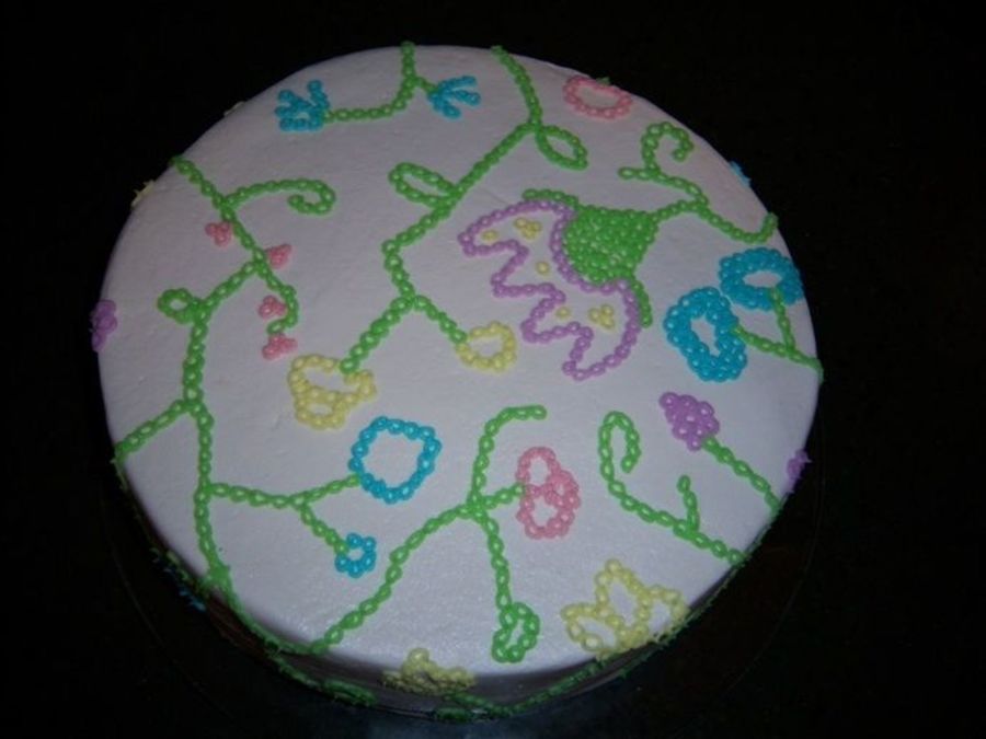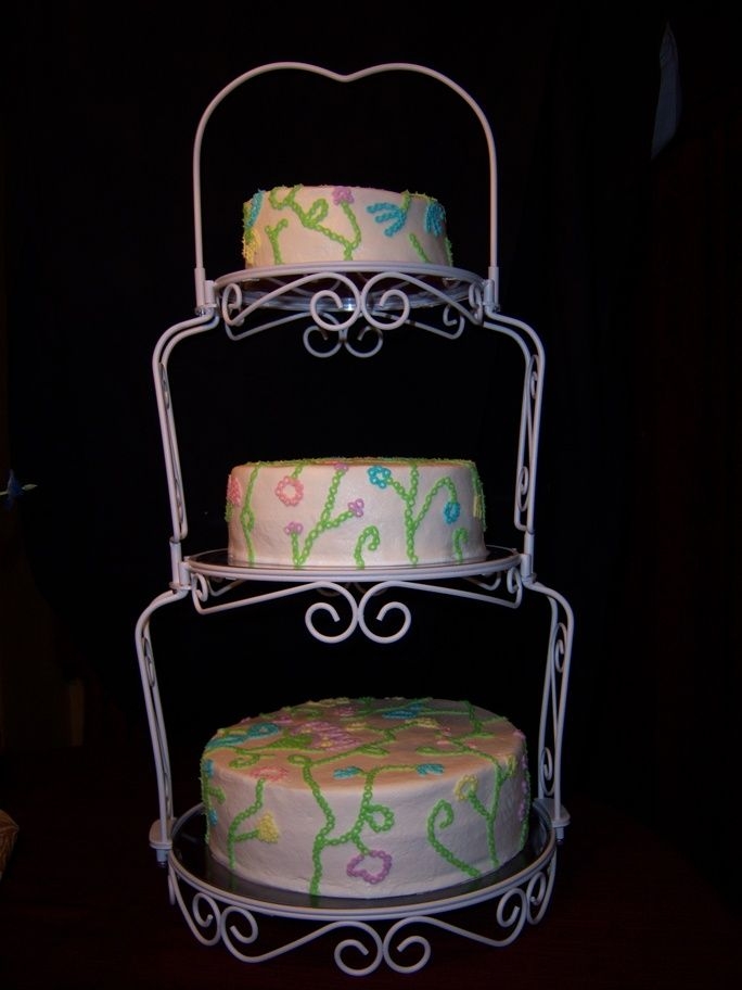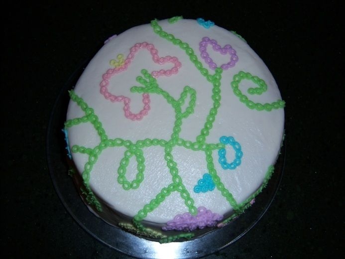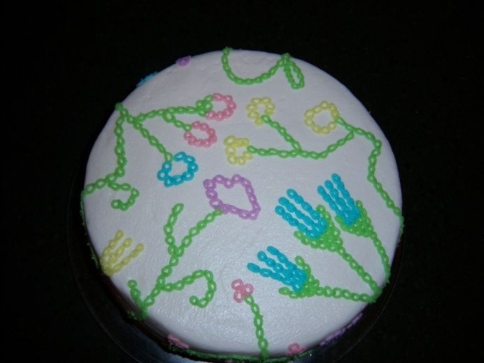 This is one of 5 cakes that I made for friends on Friday!!! I put out the word that I need practice, and people rallied. This was the bottom tier of a 3-tiered 6", 8" and 10" cake on separate plates in a vertical holder. The others were the large, round yellow one in my photos and a chocolate one that I'm ashamed to post! TFL