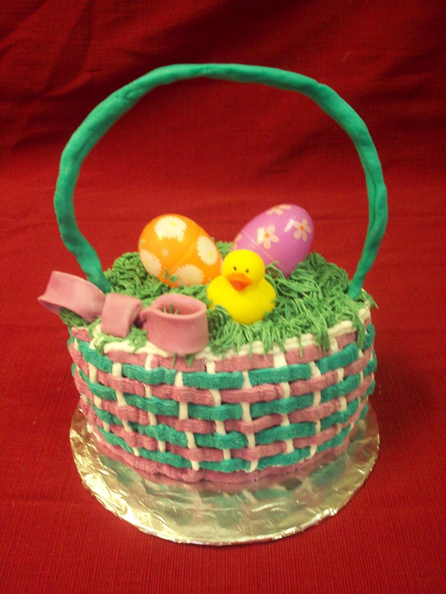 cake is covered in buttercream, the handle is fondant
