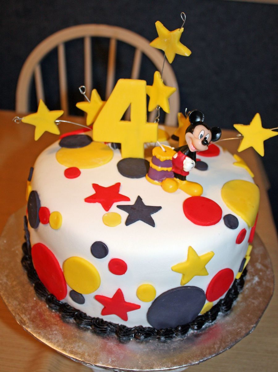 Very quick for a friend at work. Choc Fudge cake w/ buttercream. Covered in fondant with fondant accents. Mickey is a candle. TFL