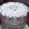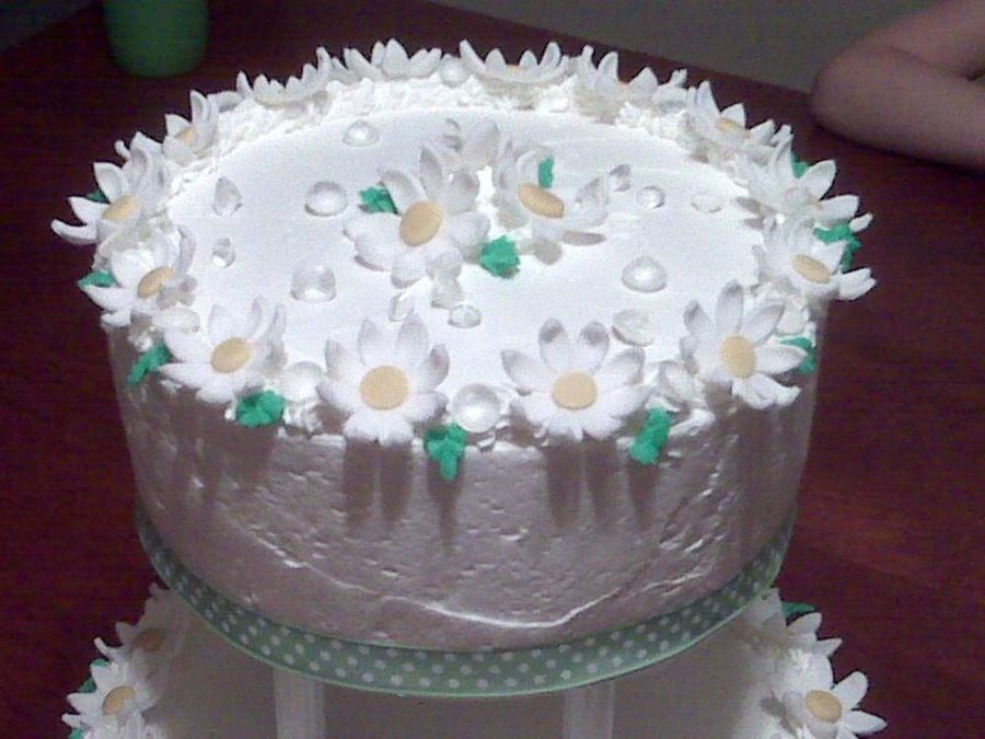 I made this cake for my sisters b-day. Her birthday is in April, so I made a cake with her birth-flower and birthstone on it; daisies and diamonds. It's frosted with whipped cream.