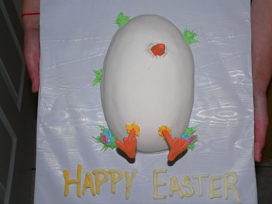 Thanks CC'ers for the inspiration! This is my version of the hatchling. I did a giant choc hazelnut biscotti truffle in the egg pan and covered with bc and fondant. TFL!!