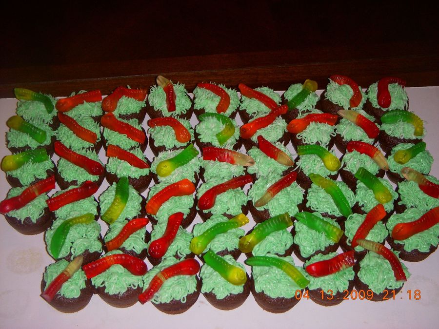 Little mini chocolate cupcakes with BC "grass" and gummy worms... My kids eat them up like nothing... LOL