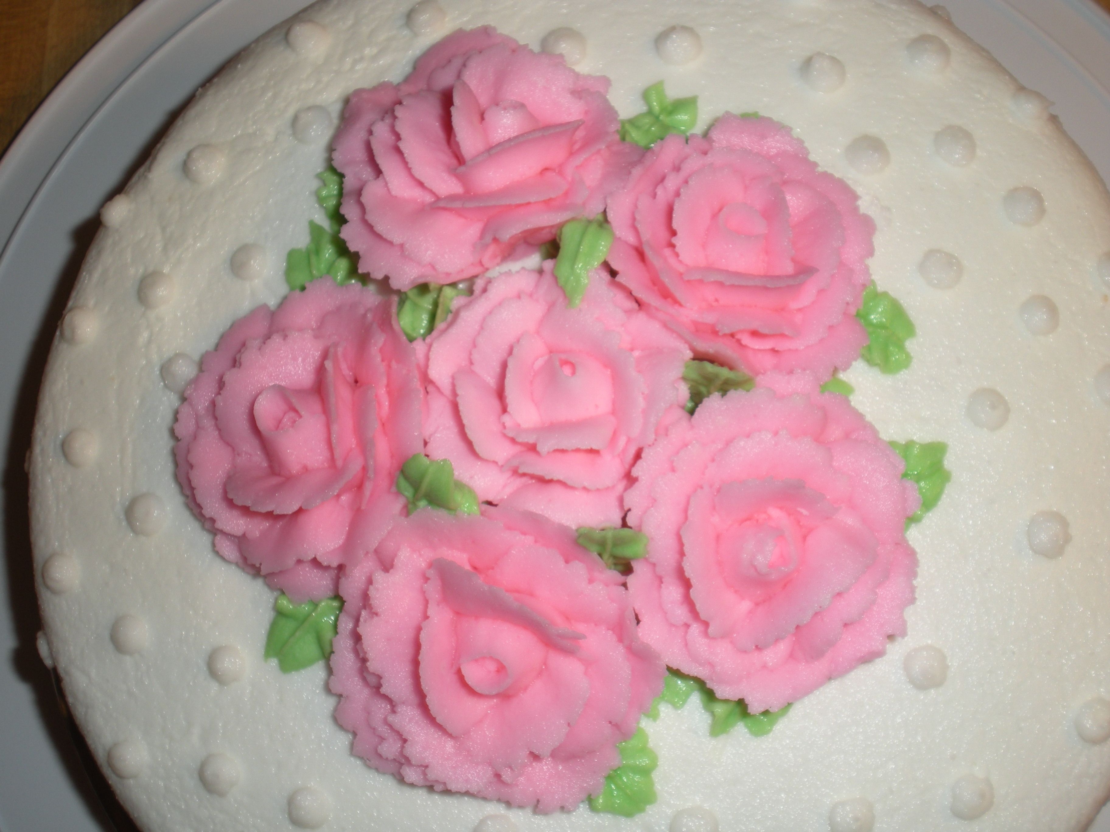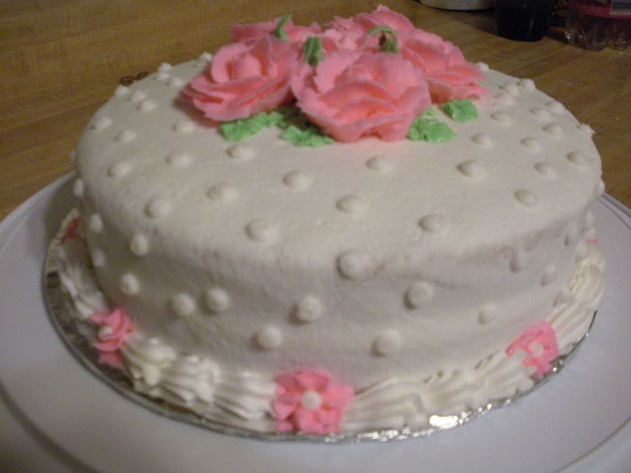 This was my final cake for course I. sorry the picture isn't better. I ran out of viva towels so I couldn't get my icing as smooth as I wanted it.