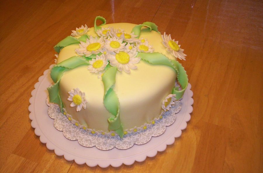 white almond cake with lemon cream cheese filling and lemon flavored buttercream frosting and fondant. My first attempt at gumpaste/fondant flowers - it was so much fun!