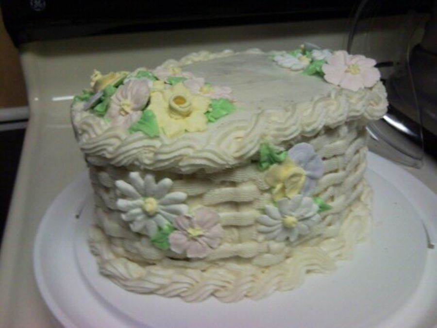 This is my final course 2 cake. I know my buttercream was too soft, but it kinda slouched over in the car ride on the way home. It was fun to do the basketweave though!