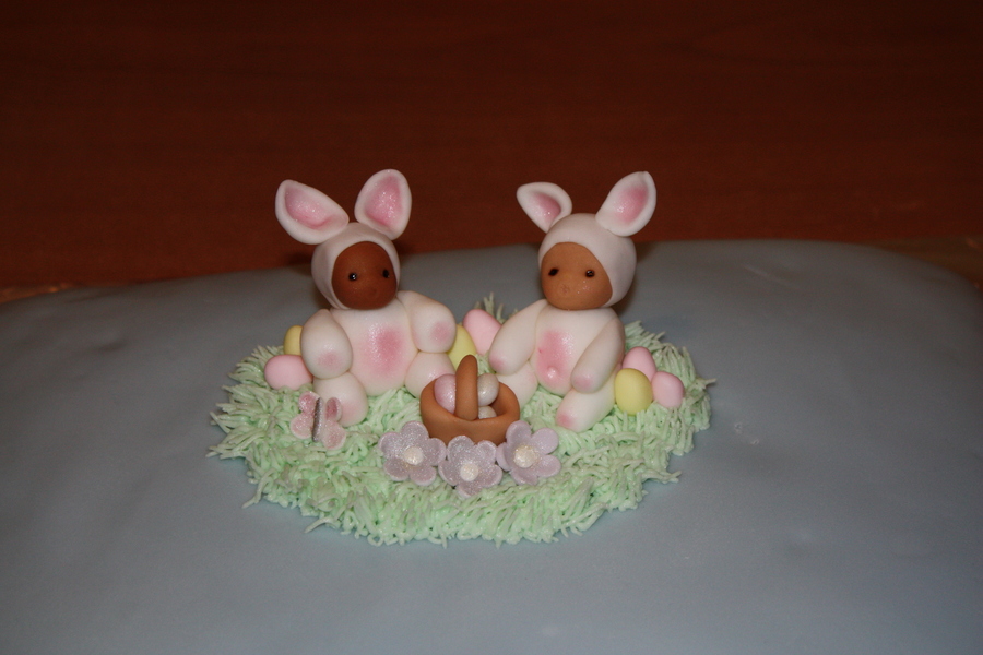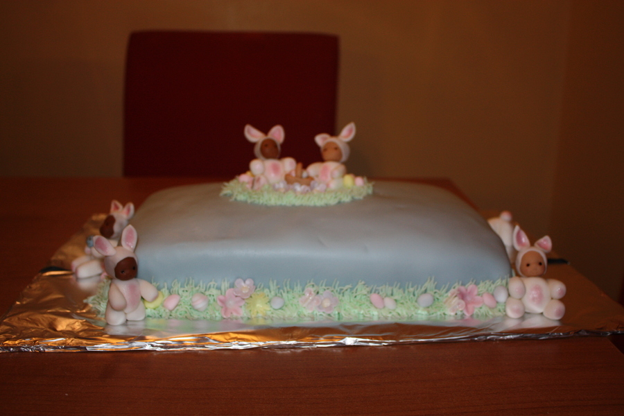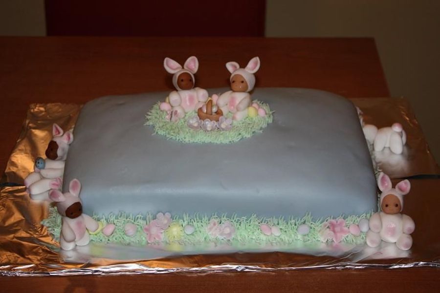 Cake was made for easter egg hunt! Fondant bunny babies, flowers, and easter eggs