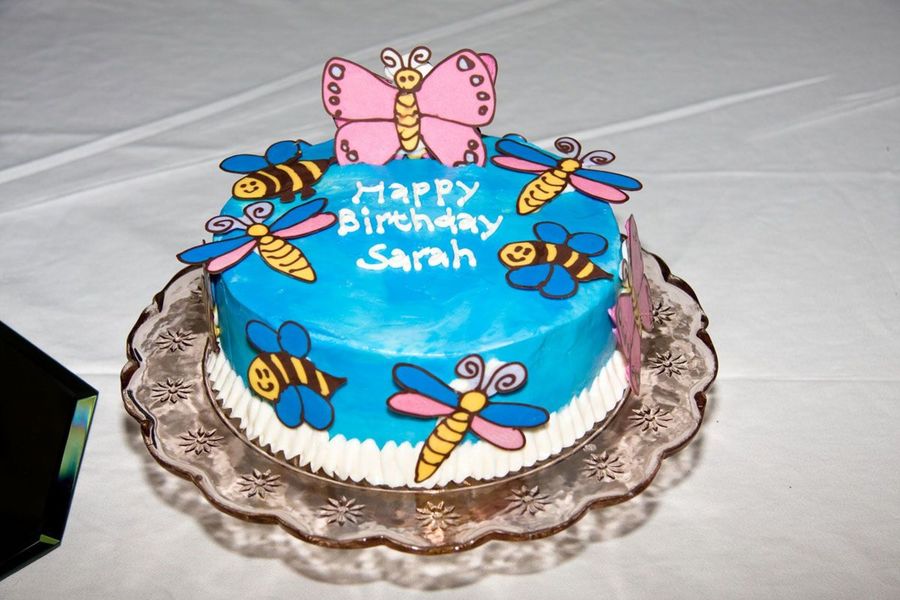 My niece and nephew are twins, so my sister had a bug themed birthday. This was the girl's cake, so I was trying to make it look like a sky. Inspired by WBH.