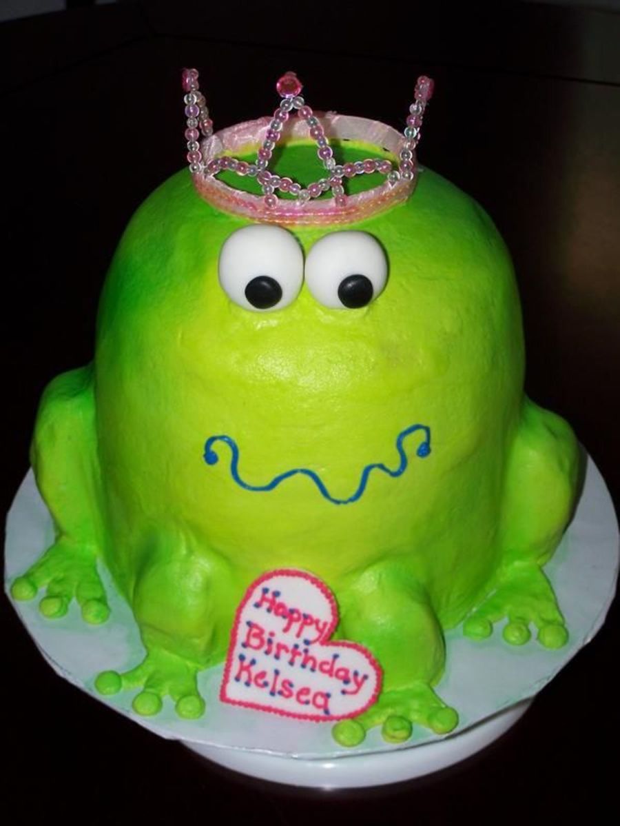sculpted frog cake with buttercream, fondant name plaque and eyes. (non- edible tiara...i know, shame on me!!!)