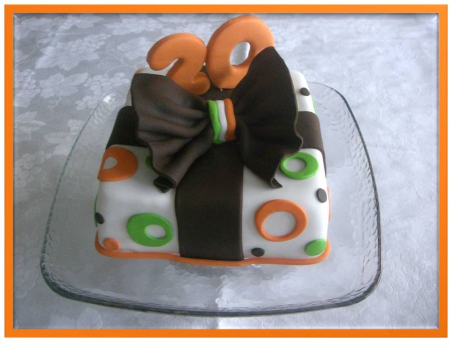 Chocolate cake covered with fondant. I made this cake for my son´s birthday. The bow is fondant with tylose.