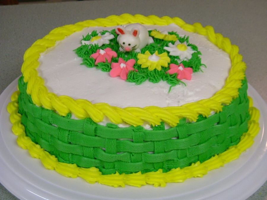 First basketweave....first fondant figure. White cake with buttercream. Royal icing flowers.